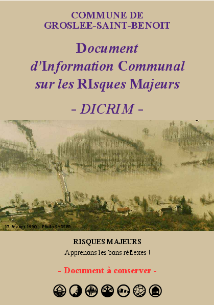 Le Document d'Information Communal sur les RIsques Majeurs (DICRIM), prévu par l'article R. 125-11 du Code de l'environnement. Il informe les habitants de la commune des risques majeurs, naturels ou technologiques existants, et des mesures de prévention, de protection et de sauvegarde mises en œuvre face à ces risques sur la commune.